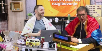 Dok se predsednik Srbije Aleksandar lavovski borio u Njujorku kako bi odbranio Srbiju, na televiziji "Nova S" u jutarnjem programu voditelj ga je ismevao tako što je ogrnuo peškir oko sebe.