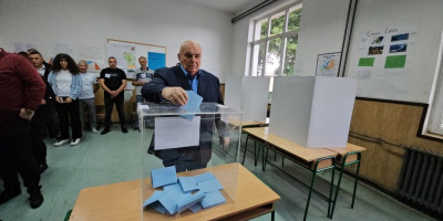 Dragan Marković Palma glasao je sa porodicom za lokalne izbore za grad Jagodinu na biračkom mestu u rodnom selu Končarevu.