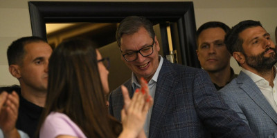 * Hvala narodu na poverenju, sad imamo tri godine da uradimo ono što smo obećali - prosečnu platu od 1.400 evra i prosečnu penziju od 650 evra, poručio predsednik Vučić nakon što je njegova koalicija osvojila vlast u 85 od 89 gradova i opština u kojima je juče održano glasanje