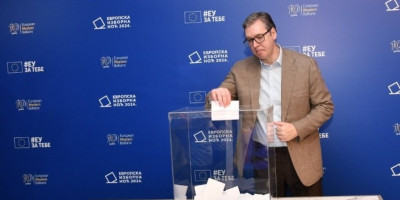 Predsednik Srbije Aleksandar Vučić pridružio se "Evropskoj izbornoj noći 2024" koju drugi put u Srbiji organizuju Delegacija Evropske unije u Srbiji i portal European Western Balkans.