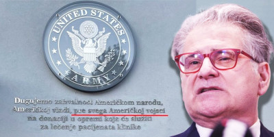- Dugujemo zahvalnost Američkom narodu, Američkoj vladi, pre svega Američkoj vojsci na donaciji u opremi koja će služiti za lečenje pacijenata klinike - ovako glasi sraman natpis na ustanovi u kojoj je doktor Milić direktor.