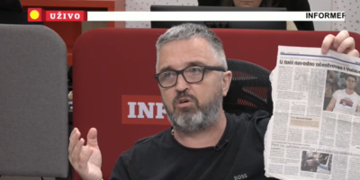 - Ovo je jučerašnji "Danas". Radi se o sukobu srpskih i šiptarsko-bošnjačko-engleskih huligana koji su napali srpske navijače u Gelzenkirhenu. Pazite naslov "U tuči navodno učestvovao i Vučićev sin". Navodno učestvovao Vučićev sin. Ja tako mogu da stavim naslov "Draža Petrović se navodno juče drogirao nasred Terazija". Navodno. Valjda to "navodno" mi daje pravo da napišem šta god hoću. Nema nijednog dokaza za ovo. Druga stvar, rekao sam i juče, Danilo Vučić jeste bio tamo sa svojim drugarima. Jel se tukao? Pa nije se tukao. A da li je bio spreman da se brani? Pa jeste. Da li je snimljen u nekom polukadru? Pa jeste, pa šta?! A šta je trebalo da radi kad su ih napali poludeli huligani? Šta je trebalo da radi? Da kaže "evo udarite mi jedan šamar, pa drugi šamar, pa me malo izmlatite, pa mi polomite ruku, nogu..." pa bi bio valjda ok ili ni tad ne bi bio u redu. Pritom u celom ovom tekstu nema nigde ni naznake da je Vučićev sin učestvovao u tuči - raskrinkao je Vučićević tajkunske medije i pokazao je sav besmisao napada na Danila Vučića.