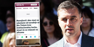Na portalu Nova.rs osvanuo je tekst sa naslovom: "Manojlović: Ako vlast ne odustane od saradnje sa Rio Tintom kroz institucionalnu borbu, stvari će se rešavati na ulicama", u kome bez srama Manojlović ističe da to nikako nije pretnja.