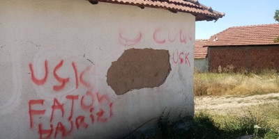 Na kući porodice Đurković, u selu Gojbulja kod Vučitrna, noćas su ispisani grafiti "UČK" i ime zločinca i teroriste Fatona Hajrizija koji je hladnokrvno ubio srpskog policajca Nikolu Krsmanovića.