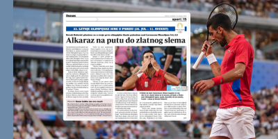 U štampanom izdanju Danasa, naime, objavljen je tekst pod naslovom "Alkaraz na putu do zlatnog slema" iz čega je jasno kome su naklonjeni u velikom finalu.