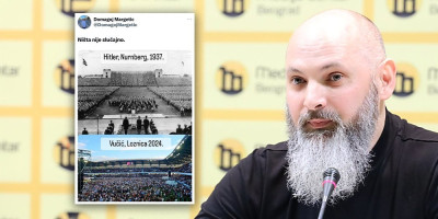 Naime, Margetić je na društvenoj mreži X uporedio današnje obeležavanje Dana sećanja na strašan zločin u Oluji sa Hitlerovim skupom u nacističkoj Nemačkoj, kao i predsednika Vučića sa Hitlerom?!