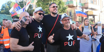 Na političke proteste koji se večeras organizuju u režiji opozicije koju predvode tajkuni Dragan Đilas i Deragan Šolak stigli su prpadnici Pokreta ujedinjenih fantoma, (PUF) lažni ekolog Aleksandar Jovanović Ćuta i opoziciona uzdanca, folk pevač, Milan Topalović Topalko.