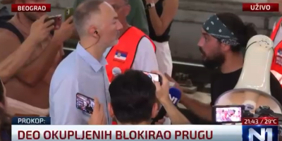 Njega je intervjuisao hrvatski novinar N1 na Prokopu gde su blokirali železnički saobračaj, a Bijelić je bukvalno pretio izazivanjem građanskog rata.