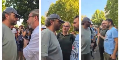 U video snimku koji objavljujemo vidi se Zoran Đorđević, govornik sa prethodnog protesta, koji je ušao u klinč sa organizatorima, izrevoltiran time što su skupu prisustvovali i političari.