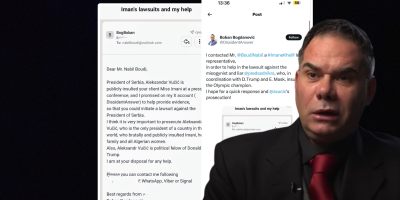- Kontaktirao sam pravnog zastupnika Helifa kako bih pomogao u tužbi protiv mizogenostom Vučića koji u kooordinaciji sa Donaldnom Trampom i Ilonom Maskom vređa Olimpijsku šampionku. Nadam se brzom odgovoru i suđenju Vučiću - stoji u objavi ovog opskurnog lika.