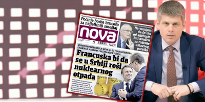 Tako je sada na naslovnoj strani lista "Nova" objavljeno da će Francuska u Srbiji da skladišti nuklearni otpad i da predsednik Emanuel Makron zbog toga dolazi u posetu našoj zemlji.