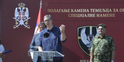 Predsednik Republike Srbije Aleksandar Vučić položio je kamen temeljac za izgradnju novog objekta za smeštaj i obuku pripadnika Odreda vojne policije specijalne namene "Kobre" u kasarni "Vasa Čarapić" u Beogradu.
