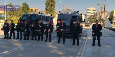 Nedaleko od pripadnika Kfora, na obe strane mosta, pozicionirano je po jedno vozilo Kosovske policije.