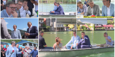 Predsednik Srbije Aleksandar Vučić i predsednik Republike Srpske Milorad Dodik stigli su čamcem u Mali Zvornik, na Zvorničko jezero, gde će razgovarati sa ribolovcima.
