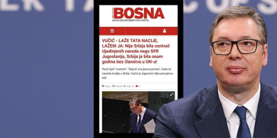 - Nije Srbija bila osnivač Ujedinjenih naroda nego SFR Jugoslavija, Srbija je bila osam godina bez članstva u UN-u! - stoji u naslovu Slobodne Bosne koja ne može da sakrije ostrašćenost prema Vučiću i Srbiji.