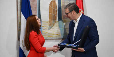 Predsednik Republike Srbije Aleksandar Vučić uručio je Orden srpske zastave prvog stepena zamenici stalnog predstavnika Republike Nikaragve pri Ujedinjenim nacijama Eleani Jaoska Pičardo.