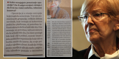 - Opozicija je u stanju entropije kojoj izgleda nema kraja. To je niz atomiziranih grupacija, velikim delom suvišnih, koje nemaju ni koheretnu političku platformu, ni potrebnu infrastrukturu da bi učinili bilo šta. One nemaju ni potrebnu infrastrukturu da bi učinile bilo šta. Da biste postigli bilo koji cilj u politici, morate imati i jaku političku organizaciju koja takvu borbu može da iznese, da svoje pristalice ujedine u front. Koalicija Srbija protiv nasilja je ulivala nadu i napravila određene pomake u decembru 2023, ali se katastrofalno raspala neshvatljivom odlukom o bojkotu junskih izbora, pod izgovorom da samo treba pričekati septembar kada će Vučić dati "izborne uslove". A već je bio jedan bojkot koji nije ništa doneo, i ovog puta se bojkot pokazao kao pogubna i katastrofalna politika. Razbijanje koalicije je bio težak udarac za sve one koji se protive Vučićevom režimu - kazala je ona i pozvala da se pitanje bojkota jednom zauvek stavi "ad acta".