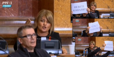 Ćuta je čak, nakon što je pokazivao u Skupštini potez koji dobro zna (pijenje naiskap), prekidao ju je dok je govorila mašući transparentom.