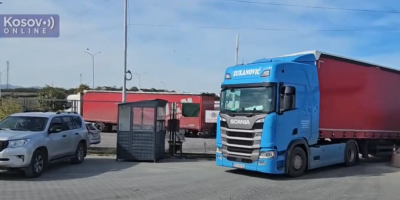 U međuvremenu je još jedan kamion sa registarskim tablicama RKS, u pratnji policije, stigao na terminal.