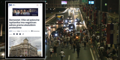 Negativan odnos prema ekološkim protestima u Srbiji ima nešto više od polovine ispitanika koji su učestvovali u danas predstavljenom Demostatovom istraživanju, prema kojem pozitivan stav ima nepuna trećina ispitanih.