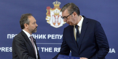 Nakon predaje izveštaja, usledio je sastanak Vučića i Žiofrea, a posle sastanka planirana su obraćanja medijima.