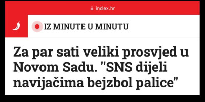 - Za par sati veliki prosvjed u Novom Sadu. "SNS dijeli navijačima bejzbol palice" - stoji u objavi ustaških medija.
