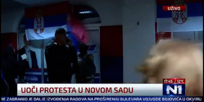 Na portalu N1 televizije objavljen je 5.11.2024. godine članak o protestu u Novom Sadu, opremljen naslovom "Verbalni sukob ispred prostorija SNS: Direktor SC Novi Sad poliven crvenom farbom". U članku je objavljen i videosnimak u trajanju od 6:55 minuta. Na početku snimka mogu se videti dva muškarca koji skidaju zastave Srbije sa prostorija SNS-a.