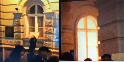 Prvo su slomili prozor, a onda kroz njega ubacili upaljenu baklju i izazvali požar! Dok je maskirani huligan, koji je bacio baklju, bežao sa lica mesta, ostali su mu klicali, smejali se i odobravali zbog vandalskog čina.