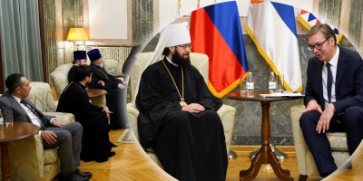 Predsednik Republike Srbije Aleksandar Vučić sastao se danas sa predsednikom Odeljenja za spoljne crkvene veze Moskovske Patrijaršije, Mitropolitom volokolamskim Antonijem.