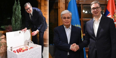 - Večeras sam imao čast da ugostim predsednika Kazahstana Kasima Žomarta Tokajeva. Srbija je zemlja koja s ponosom otvara vrata svojim prijateljima i večeras smo to još jednom pokazali. Naša tradicija gostoprimstva i srdačnosti najbolje se vidi za zajedničkim stolom, gde delimo ne samo obrok, već i vrednosti koje nas spajaju. Dobio sam na poklon čuvene kazahstanske jabuke, a i mi jabuku za trku imamo, samo što je nismo slikali.