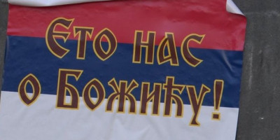 Na više lokacija na severu AP Kosovo i Metohija zalepljeni su plakati sa zastavom Srbije i natpisom "Eto nas o Božiću".