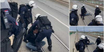 Pokret "Kreni promeni" je na svom Instagram profilu objavio snimak na kome se vide policajci koji pokušavaju da savladaju Manojlovića koji se opire hapšenju dok sedi i leži na zemlji.