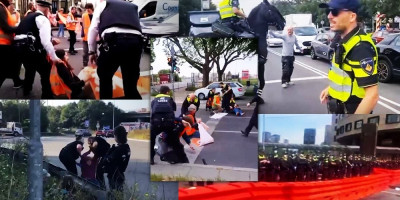 Prizori u priloženom snimku pokazuju da policija na Zapadu nema milosti prema onima koji misle da su mnogo pametni i da mogu da maltretiraju narod, te blokiraju saobraćajnice.