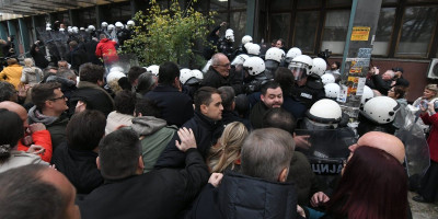 - Ajmo, ajde, svi u napad - čuo se poziv na nasilje od strane hejterske opozicije, dok je u jednom momentu policajac pao sa stepeništa pod naletom opozicionih ekstremista.