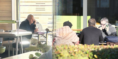 Na fotografijama koje objavljujemo jasno se vidi Ćuta koji je ispred jednog restorana brze hrane, telefonira i jede u slast, zajedno sa svojim saborcima skuplja snagu za predstojeće proteste koji za cilj imaju maltretiranje građana.
