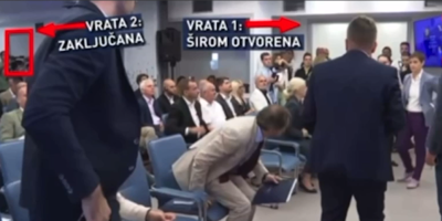 Da se radi o velikom licemerju tajkunskih medija pokazuje snimak koji sledi, a u kome se vidi da sada navodno radnicima Šolakovih medija ne bi bilo nasilje da im se zabrani izlazak iz prostorije, a prošle godine su pravili međunarodni skandal kada su sami iscenirali da su zaključani jer nisu mogli da prođu kroz vrata koja oni žele.