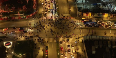 U jeku blokada dron je uslikao mali broj ljudi - računajući i slučajne prolaznike, novinarske ekipe...