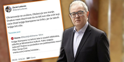 - Obrazovanje se urušava, čitalaca je sve manje. Ovakve mere doprinose da će biti sve više onih koji neće čitati knjige štampane na ćirilici, jer će takvih knjiga biti više - naveo je on na svom nalogu.