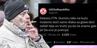 "Dekanu FTN Dumiću lako na kuću možemo doći samo dlaka sa glave deci zafali! Nije on Vučić pa da ne znamo gde je! Da ovo je pretnja!", napisao je Goran Ješić na Tviteru.