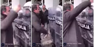 Predsednica Skupštine Srbije Ana Brnabić objavila je na svom Instagram profilu snimak na kojem se vidi kako predsednik Pokreta Slobodnih građana u Novom Sadu i član poslaničke grupe "Demokratska stranka-Zajedno-Pokret slobodnih građana" Radivoje Jovović ponižava je i maltretira policajce dok su vršili svoju dužnost štiteći Skupštinu Grada od opozicionih huligana.