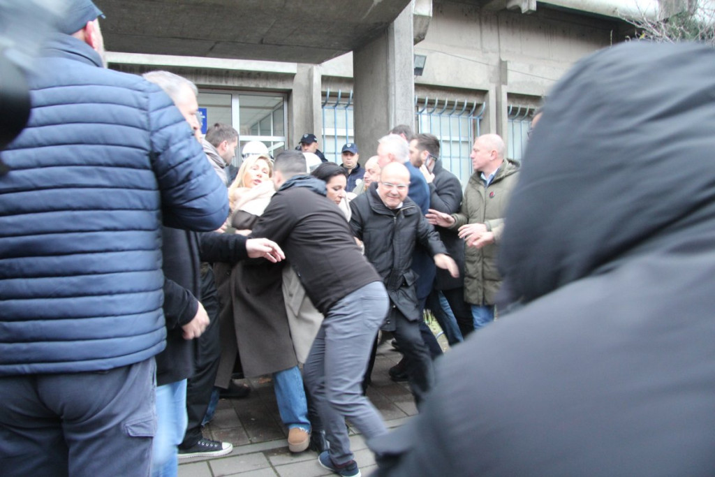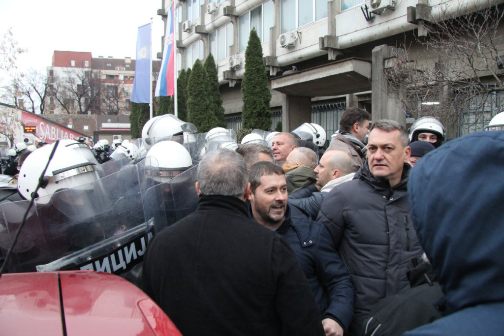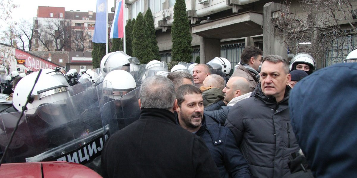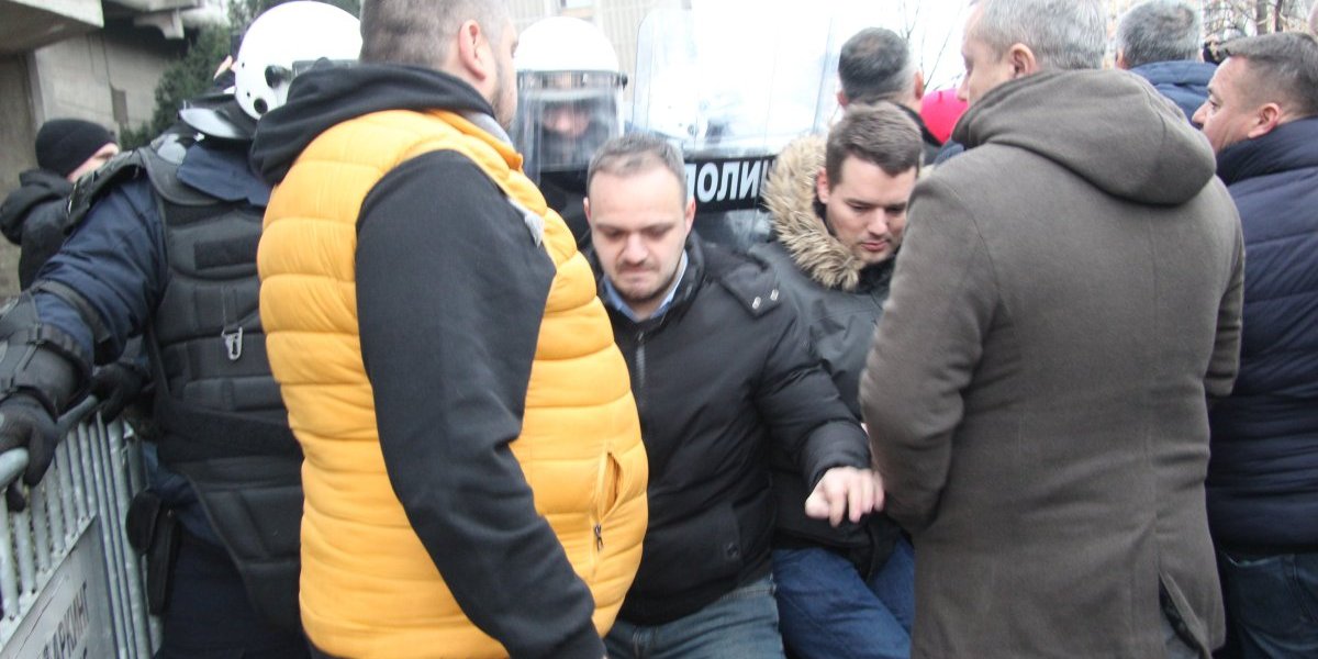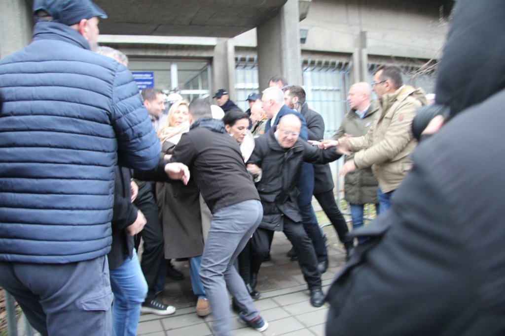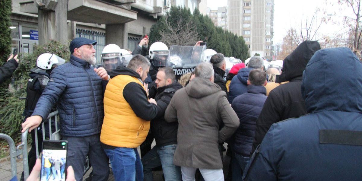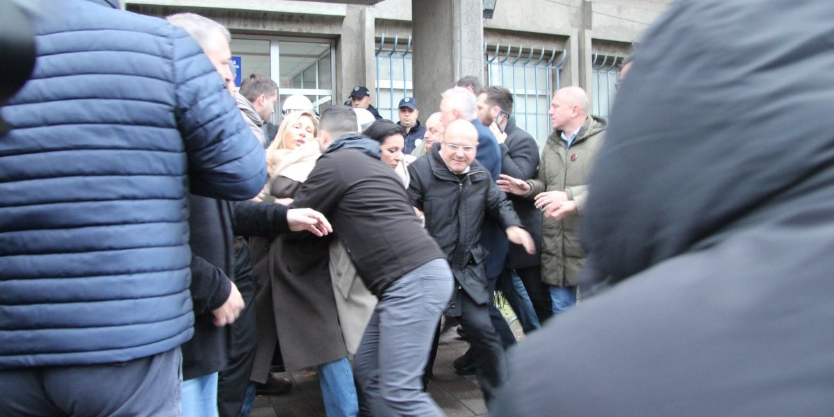 Oni su pokušali da probiju kordon policije koji je obezbeđivao ulaz u prostorije policije, a do koškanja je došlo prilikom bednog pokušaja srpske opozicije da upadnu u stanicu i i tamo izazovu haos.