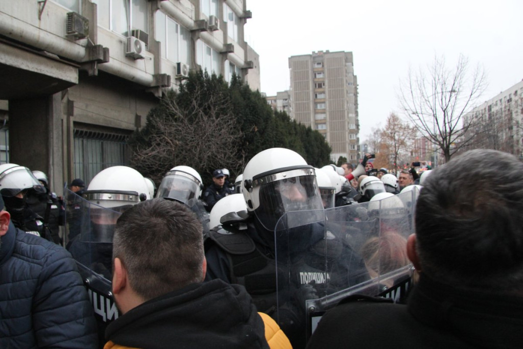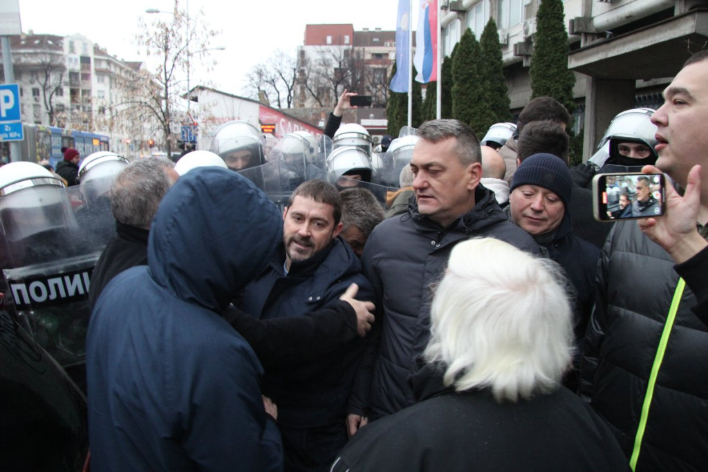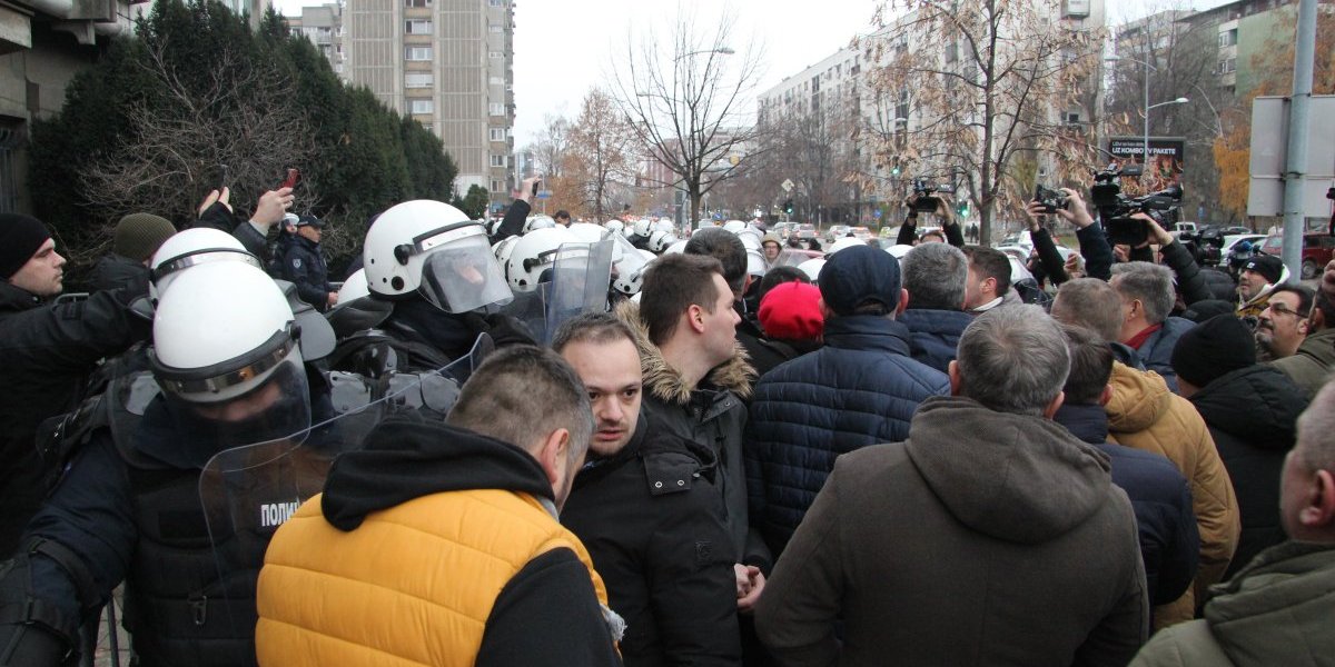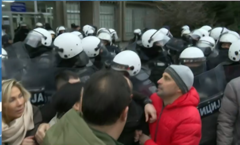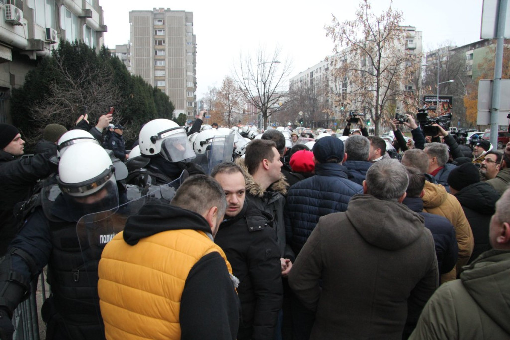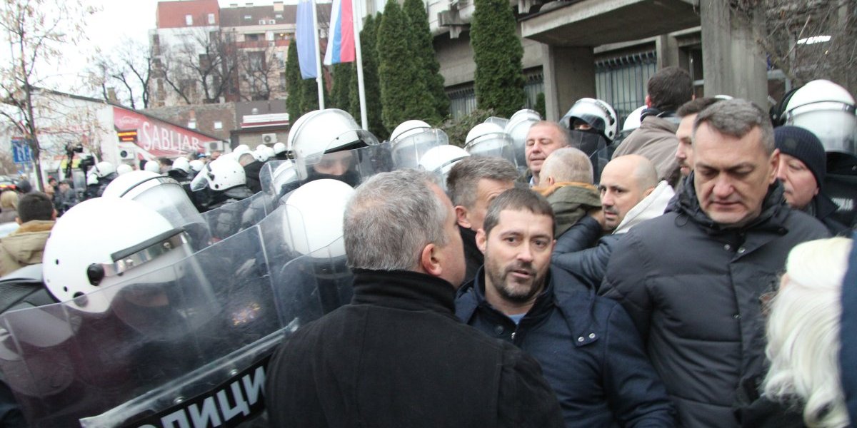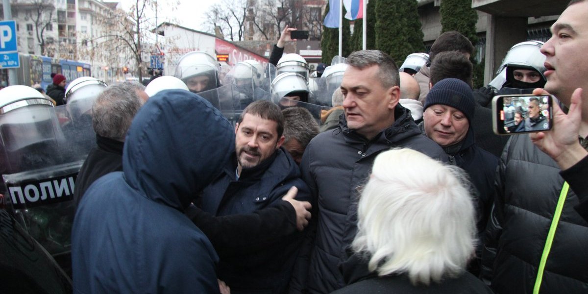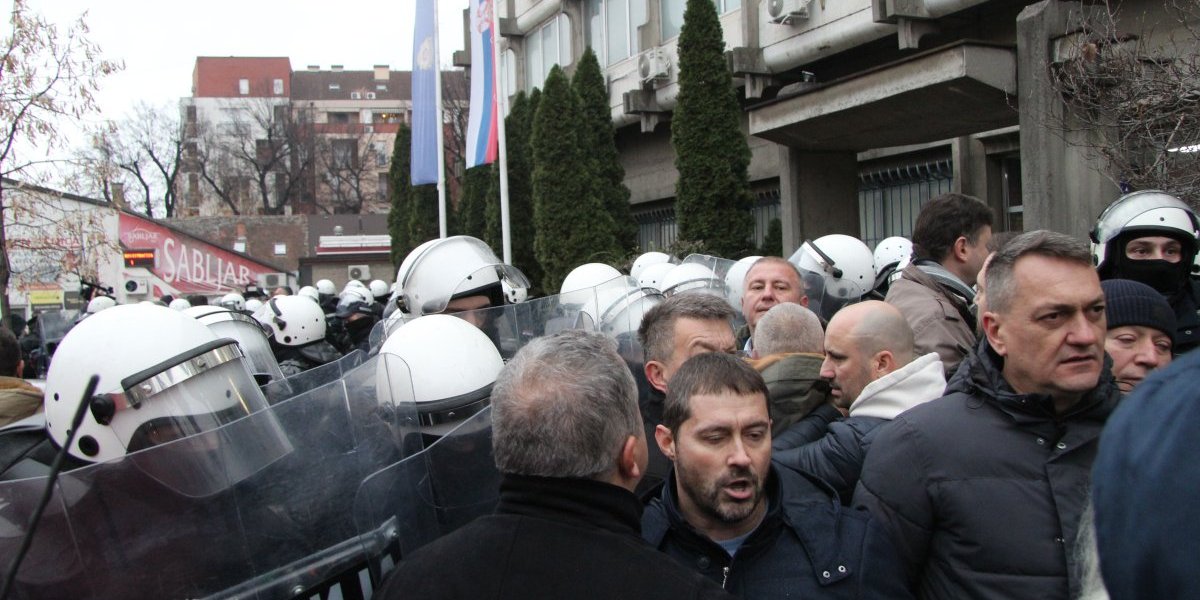 Oni su pokušali da probiju kordon policije koji je obezbeđivao ulaz u prostorije policije, a do koškanja je došlo prilikom bednog pokušaja srpske opozicije da upadnu u stanicu i i tamo izazovu haos.
