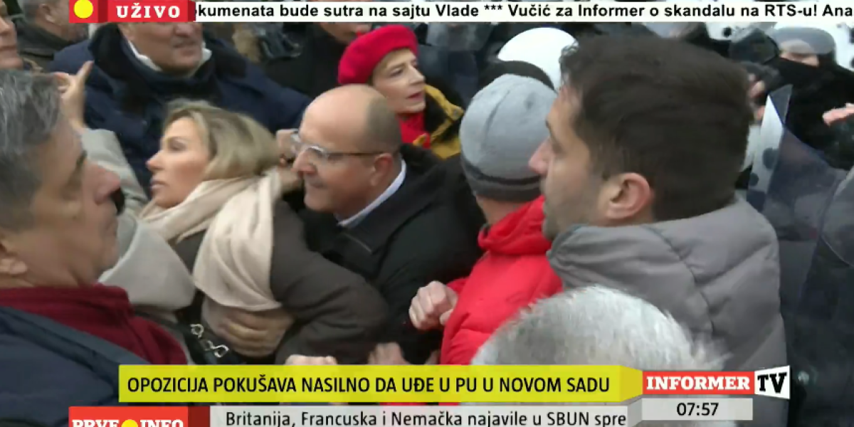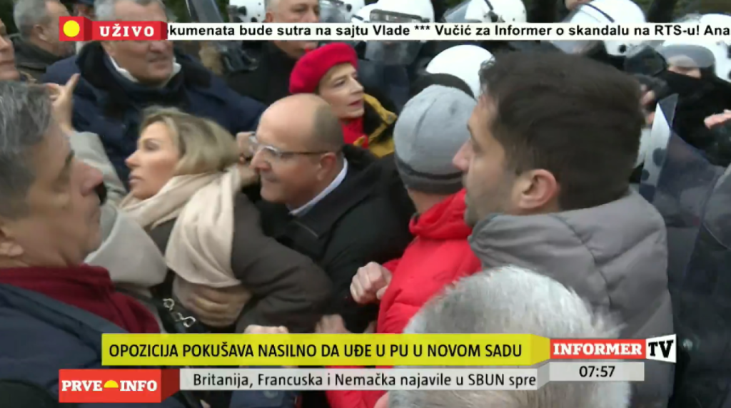 Opozicija predvođena Marinikom Tepić, Srđanom Milivojevićem, Borkom Stefanovićem... pokušala je divljački da upadne u policijsku stanicu u Novom Sadu.