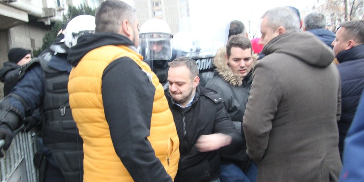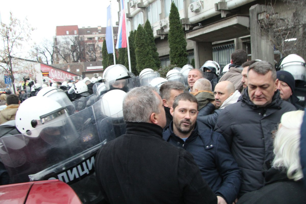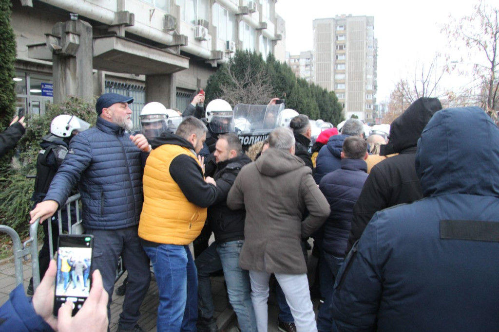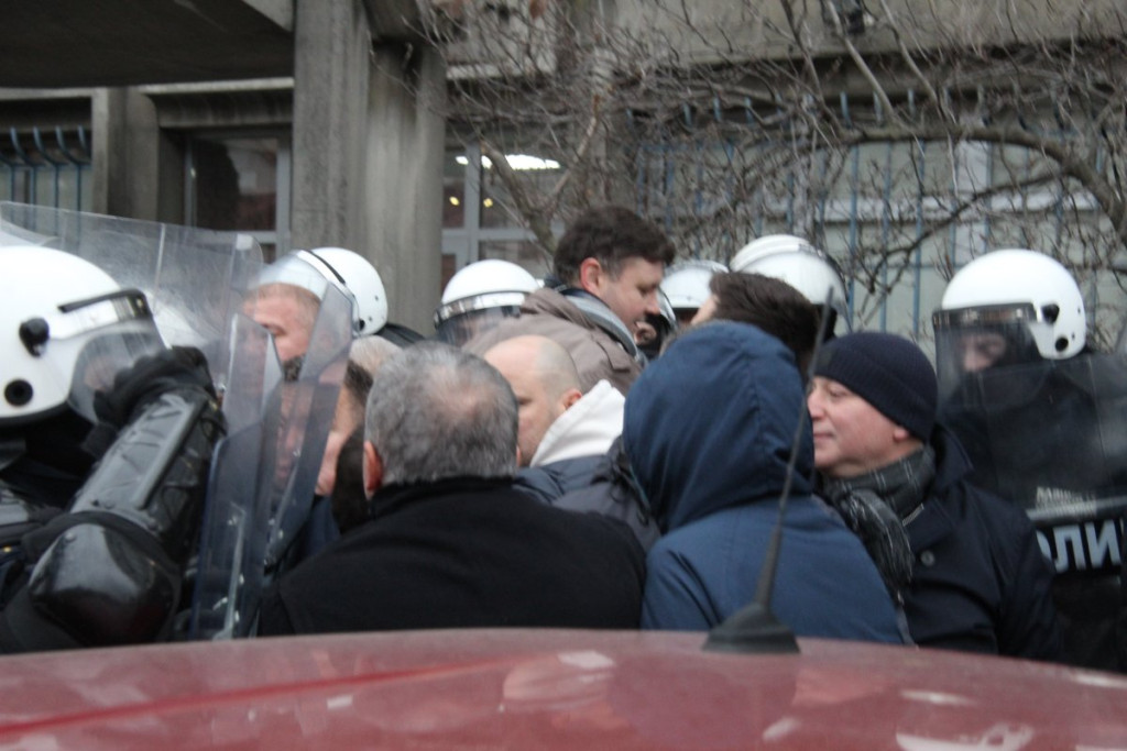 Došlo je do koškanja između opozicionih pristalica i pripadnika snaga reda, koji su sprečili pokušaj nasilnog ulaska u prostorije policije.