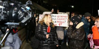 Ekipa Informera brzo je bila opkoljena pobesnelim demonstrantima koji su im se unosili u lice, lupali šerpama i zviždali pištaljkama gurajući ih uza zid.