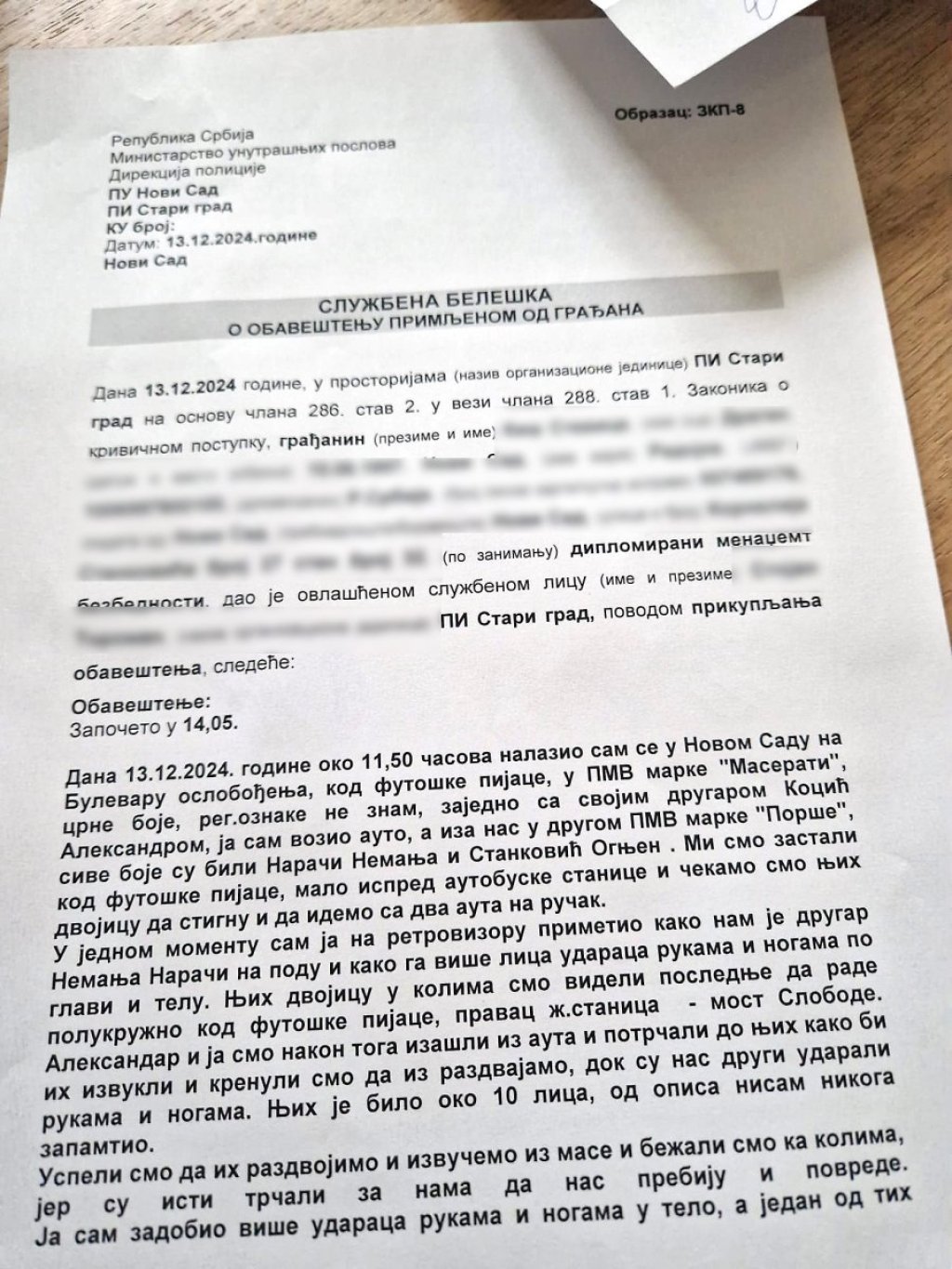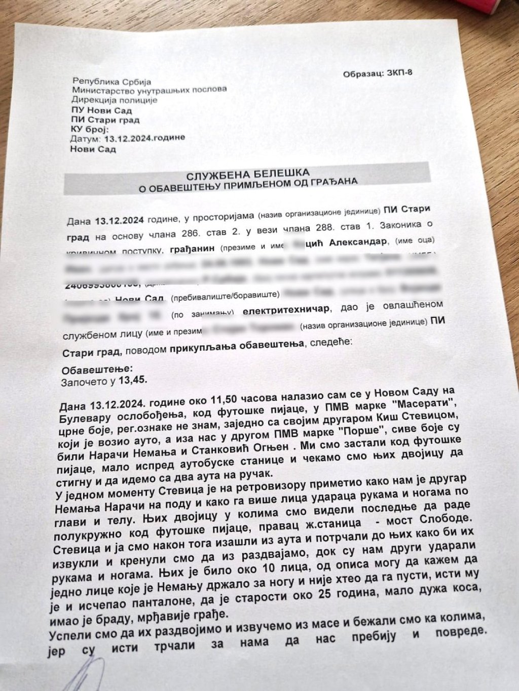 Sumnja se da su O. S. (28), S. K.((27), A. K.(31) i N. N. (29), najpre vozilom udarili jednog građanina, te da su zatim tukli njega i još jednog Novosađanina.
