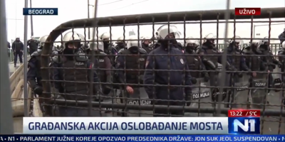 Nasilna opozicija okupila se kod Starog savskog mosta gde su se uputili prema kordonu policije koji ne dozvoljava prilaz.