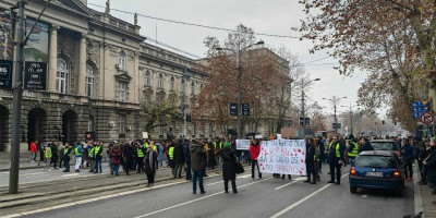 Blokada saobraćaja započeta je ispred Tehničkih fakulteta, na Bulevaru kralja Aleksandra gde je izbrojano tačno 200 glava.