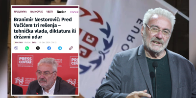 Kako su brže bolje potrčali da objave tajkunski mediji na čelu sa antisrpskim portalom Nova, Nestorović je poručio da su pred Srbijom tri puta - tehnička vlada, diktatura ili državni udar - čime je stao rame uz rame sa osvedočenim srbomrscima i antisrbima iz đilasovske opozicije!