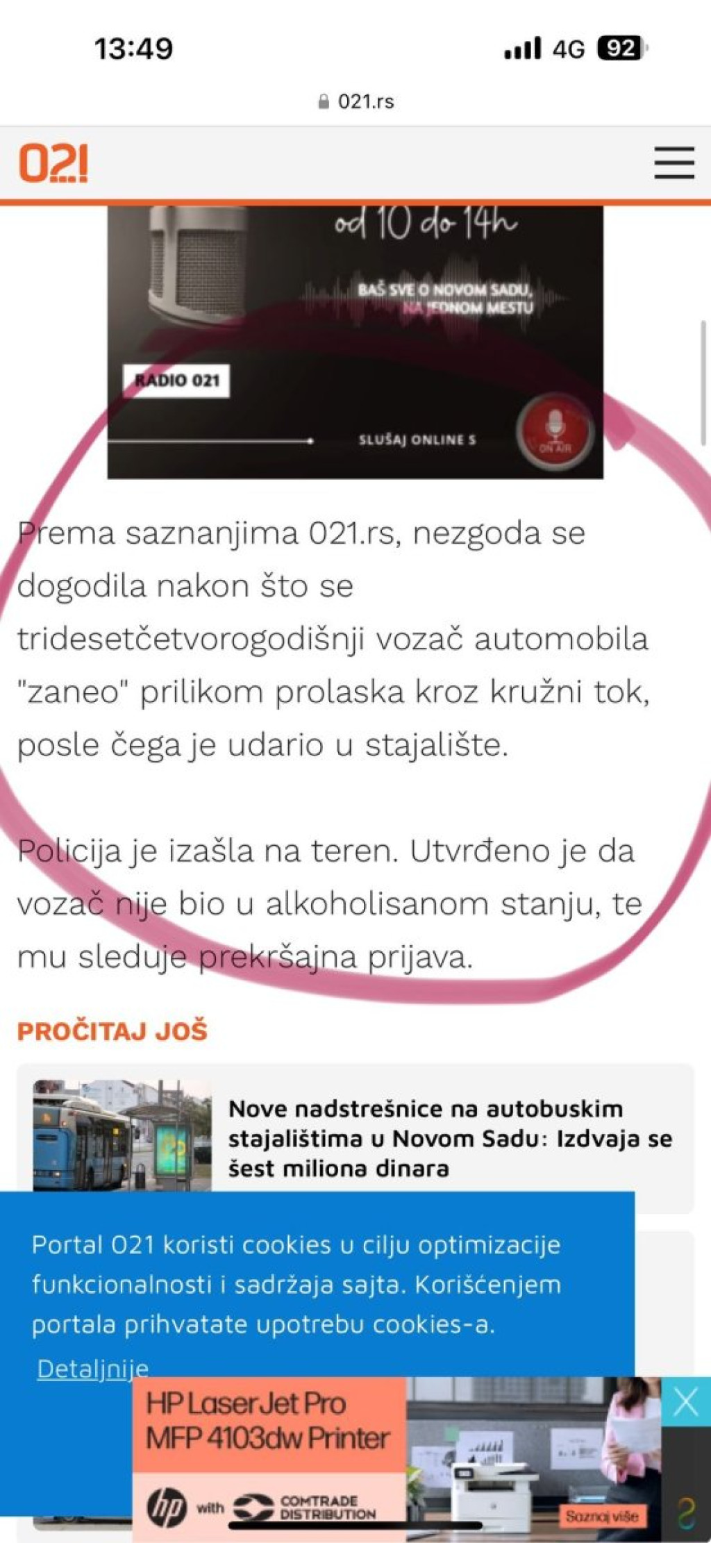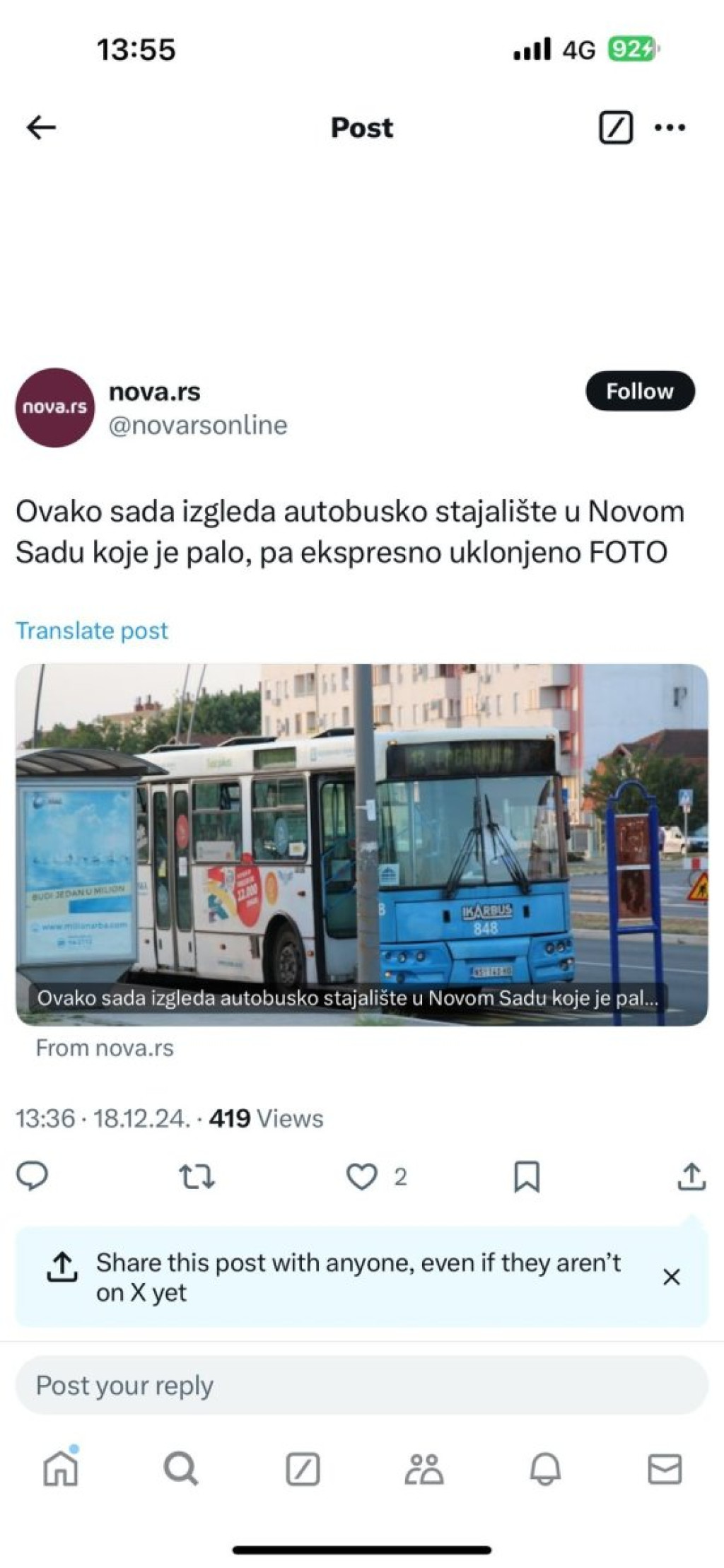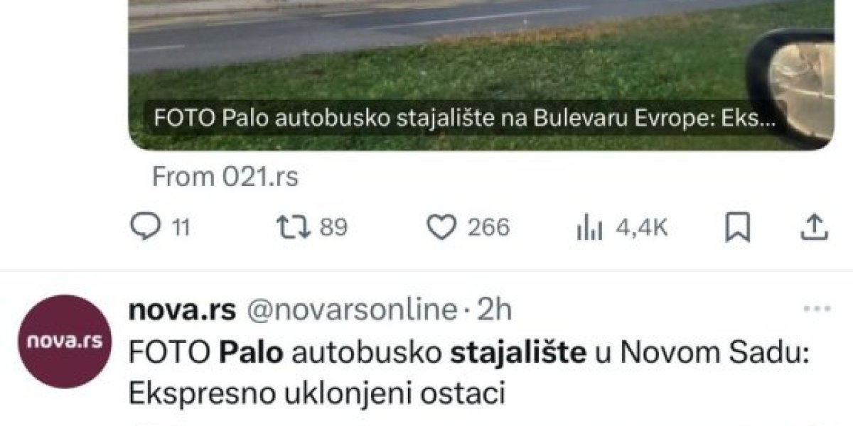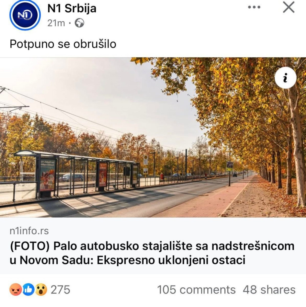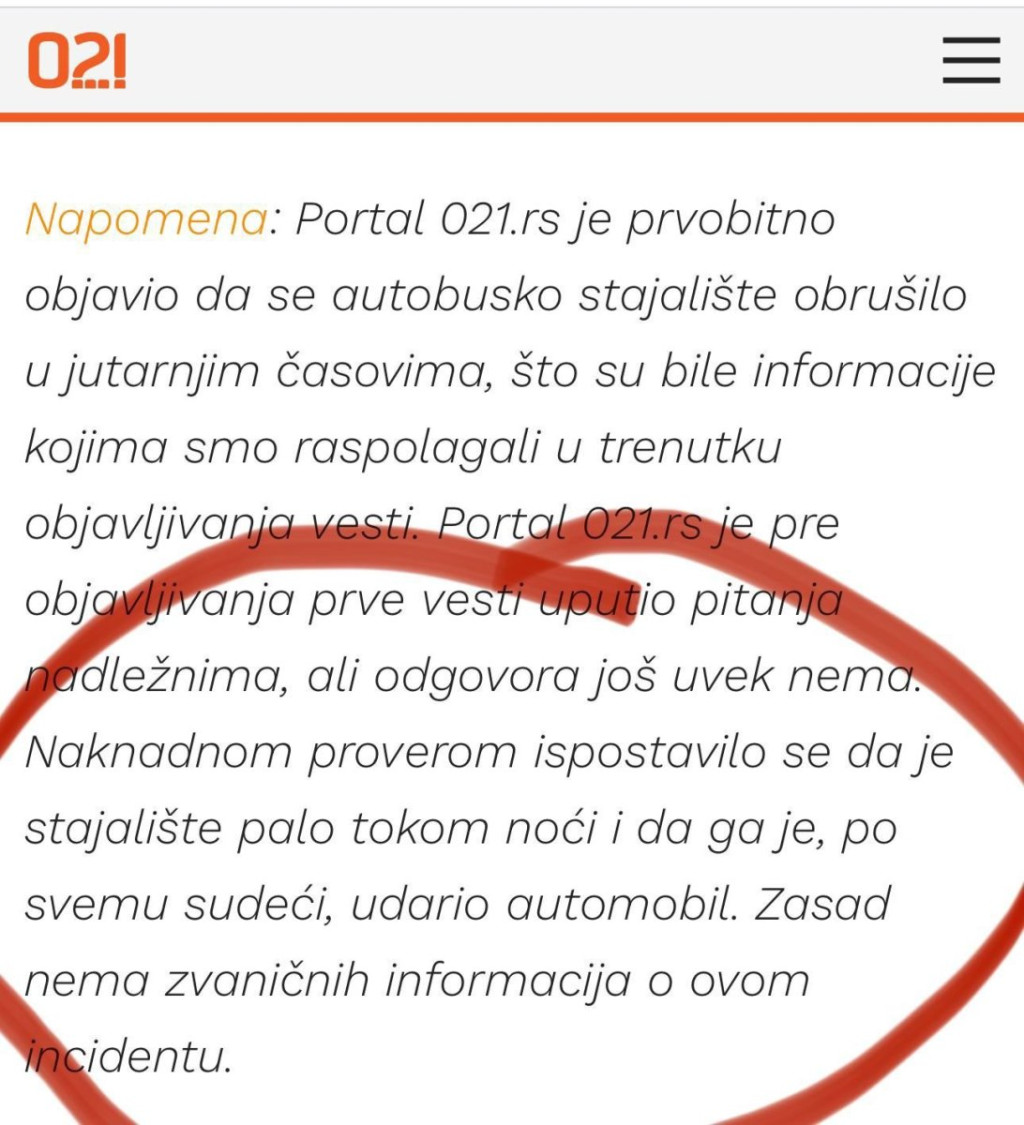 Do tog zaključka dolazi se jer su pomenuti mediji izostavili da napomenu da se stajalište srušilo jer je u njega udario automobil prilikom saobraćajne nezgode.